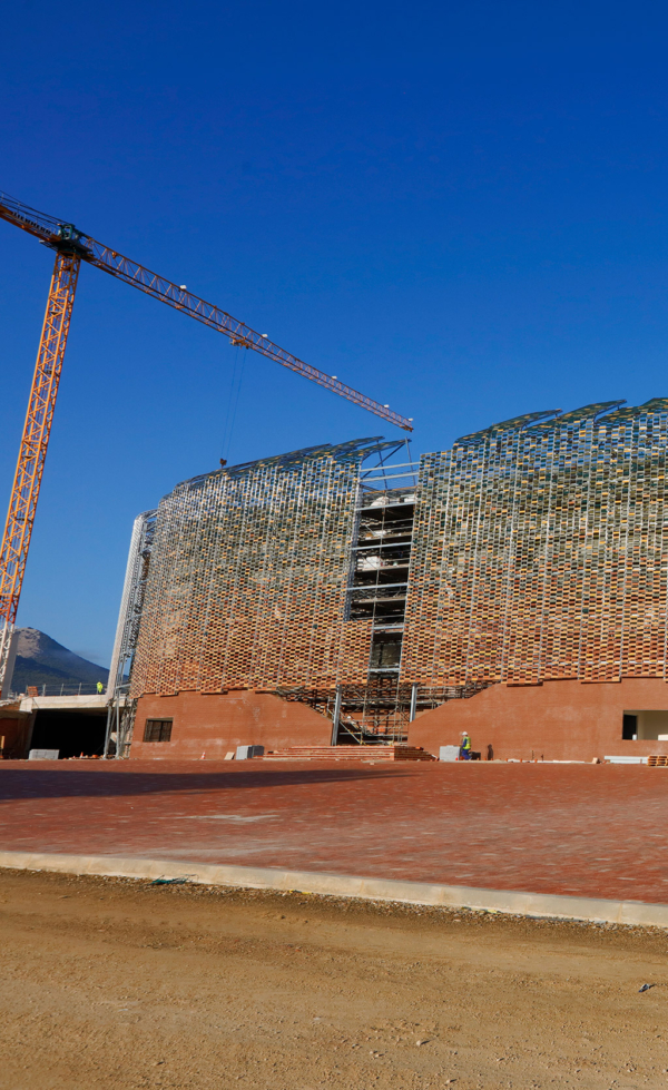 Uno de los palacios de deportes más modernos de España construido por la UTE formada por Construcciones Calderón, Acciona Construcción y Solar Jiennense. Levantado sobre una parcela de 41.300 metros cuadrados del Recinto Provincial de Ferias y Congresos de Jaén, puede albergar a 6.500 espectadores en encuentros deportivos y hasta 10.000 personas para conciertos y actividades culturales. Una gran infraestructura de moderno diseño que cuenta con una piel pétrea que evoca los olivares de Jaén y los castillos de la provincia.